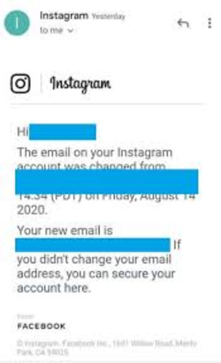 2. Check Your Email: Look for a message from Instagram saying your email was changed. There may be a link to "undo this change".