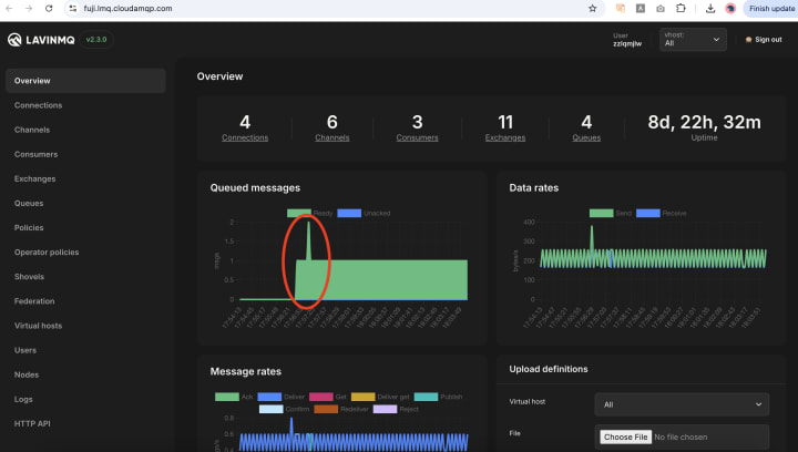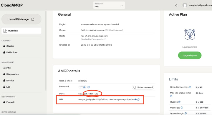 Check CloudAMQP dashboard: