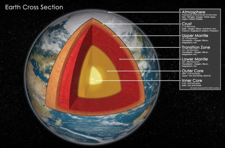What he was focused on was that very thin layer of the Earth, illustrated by the top line below.
