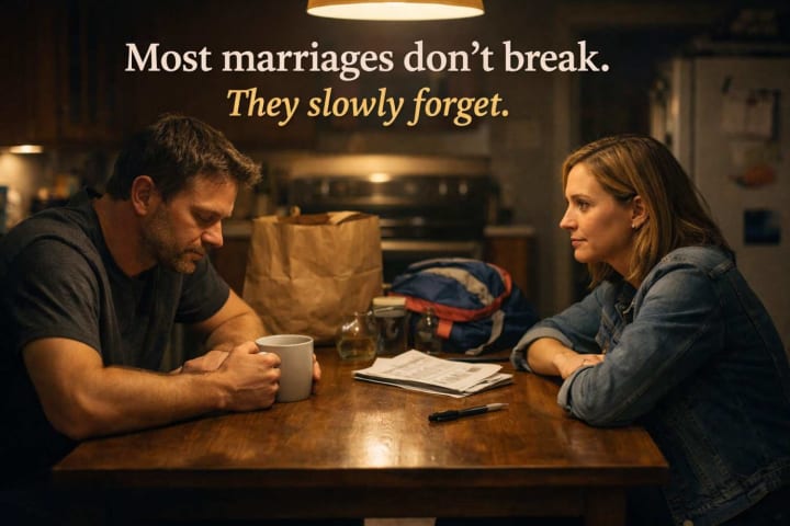 I tried something some weekly structure I found, some rule about time and checking in and actually talking on purpose. I tried it because I was desperate and because it was easier than admitting I didn't know how to fix us. It was awkward at first. Artificial. But it gave us a container for honesty that didn't feel like an ambush. We could put the hard things in that container and they wouldn't leak into everything else. It didn't solve us. Nothing solved us exactly. But it changed something I could feel in the room when we were together and I didn't fully trust it but I kept doing it anyway because I didn't have a better option.