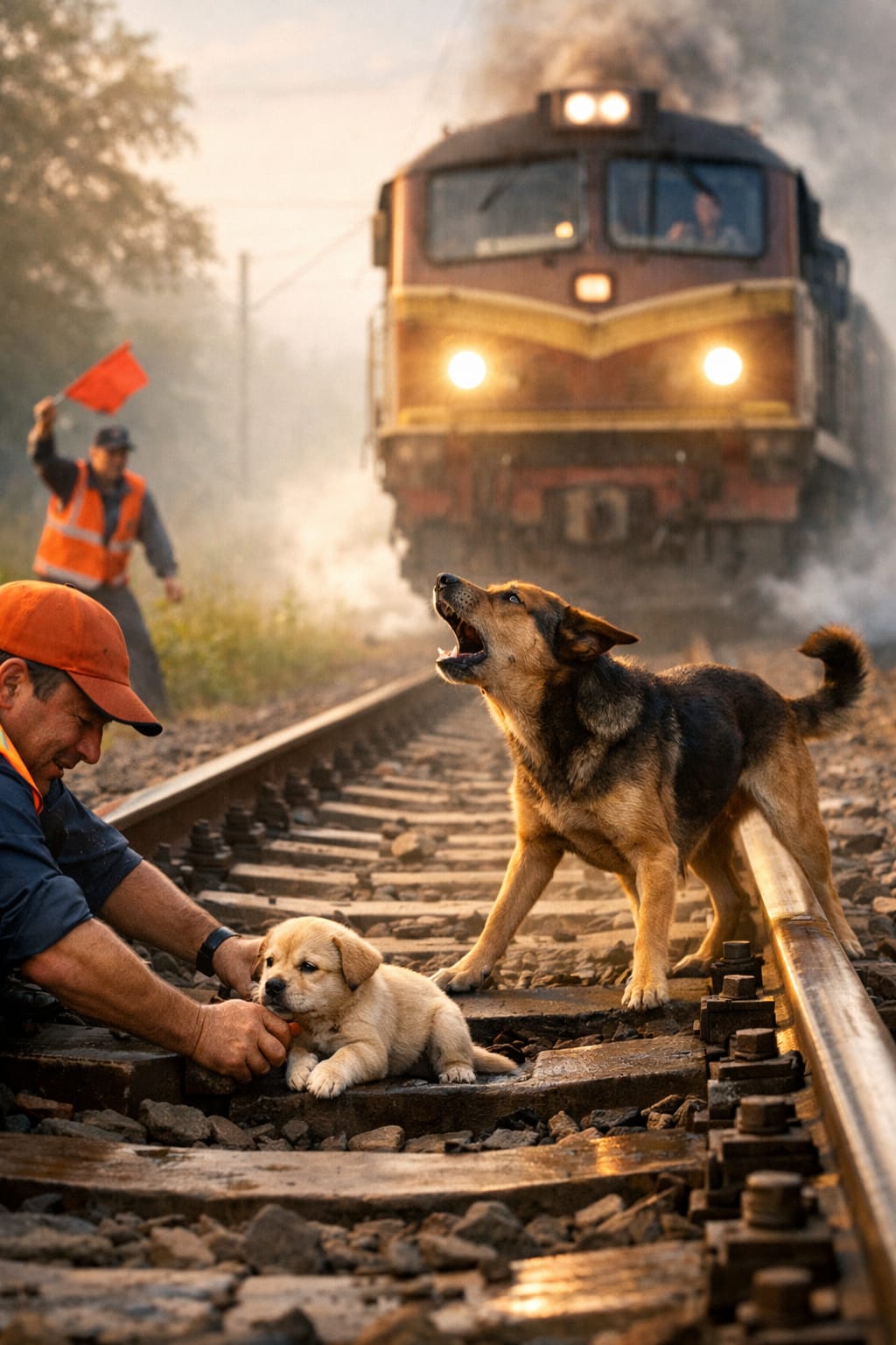 A small act of courage on a quiet railway track turns a simple dog into a true hero.