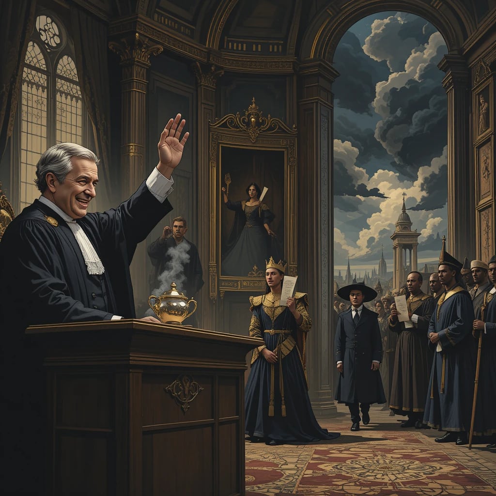 The King listened patiently, his fingers steady on the porcelain cup. At his side sat the Queen Consort, whose eyes gleamed with the sharpness of memory. For Harold had spoken poorly of her once, carving his bitterness into the pages of a book that sold well but healed nothing. Now he sat before her, asking for grace while she sipped her Earl Grey in silence.