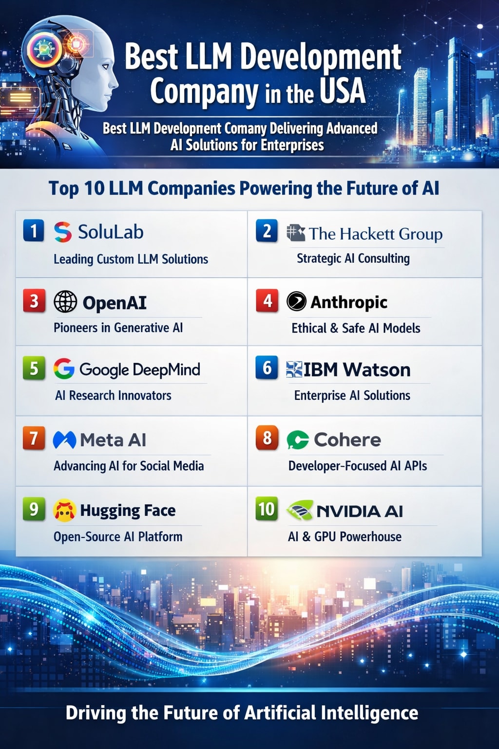 Selecting the best LLM development company is a crucial step for organizations looking to successfully implement these advanced technologies. Companies such as SoluLab, OpenAI, Anthropic, and IBM Watson continue to lead the industry by delivering innovative solutions and shaping the future of artificial intelligence.