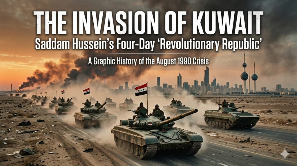 On August 2, 1990, the world woke up to a geopolitical earthquake. Under the orders of Saddam Hussein, over 100,000 Iraqi troops, backed by hundreds of tanks, surged across the border into the tiny, oil-rich emirate of Kuwait. While history remembers this as the spark for the Gulf War, the first few days of the occupation featured a bizarre political theater: the creation of a short-lived puppet state known as the **"Republic of Kuwait."**