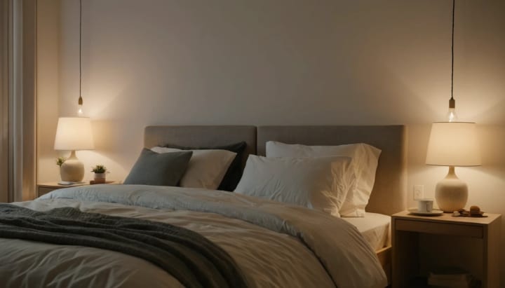 Create a calm sleep environment with cool temperatures, low light, and comfortable bedding.