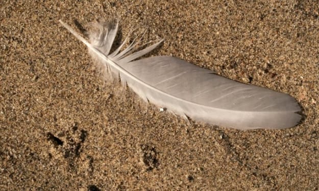 Feather on hot ground Long, gray, shiny, all alone Detached from owner