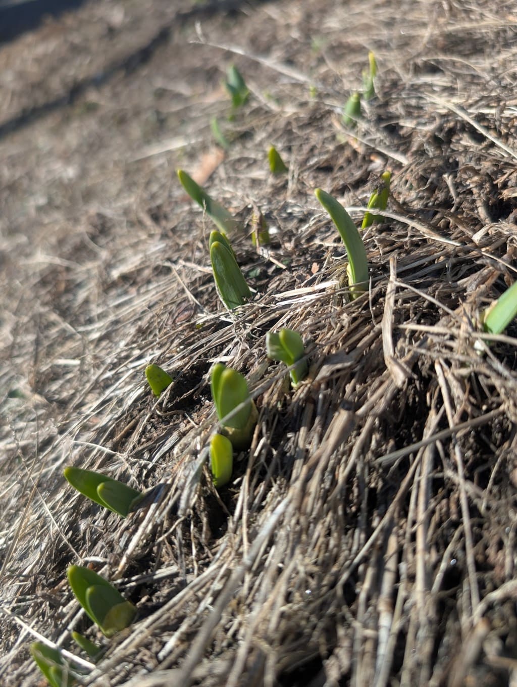 grass; daffodils, defiant,