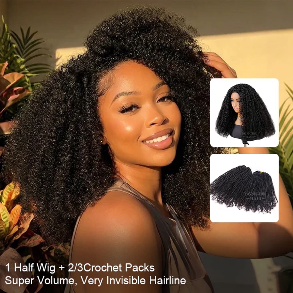 Blending is everything. With a half wig, you leave out a small section of your natural hair in the front. Crochet hair underneath helps match texture and support the shape.