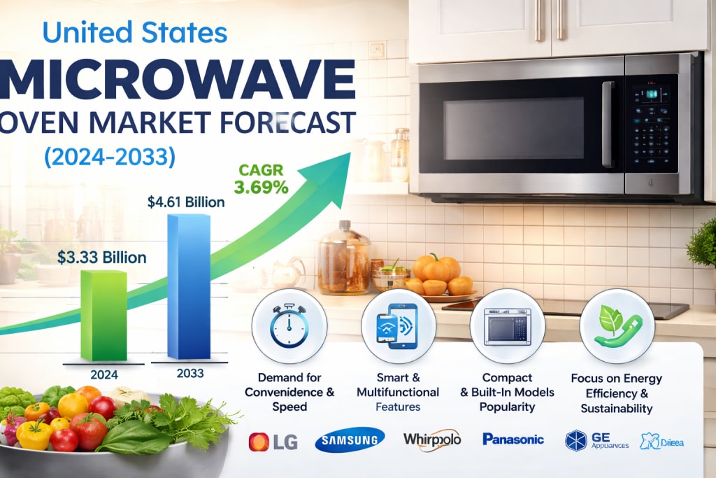 The United States microwave oven market continues to evolve alongside changing lifestyles, technological innovation, and the growing demand for convenient kitchen appliances. According to industry estimates, the market was valued at US$ 3.33 Billion in 2024 and is expected to reach US$ 4.61 Billion by 2033, expanding at a compound annual growth rate (CAGR) of 3.69% from 2025 to 2033.