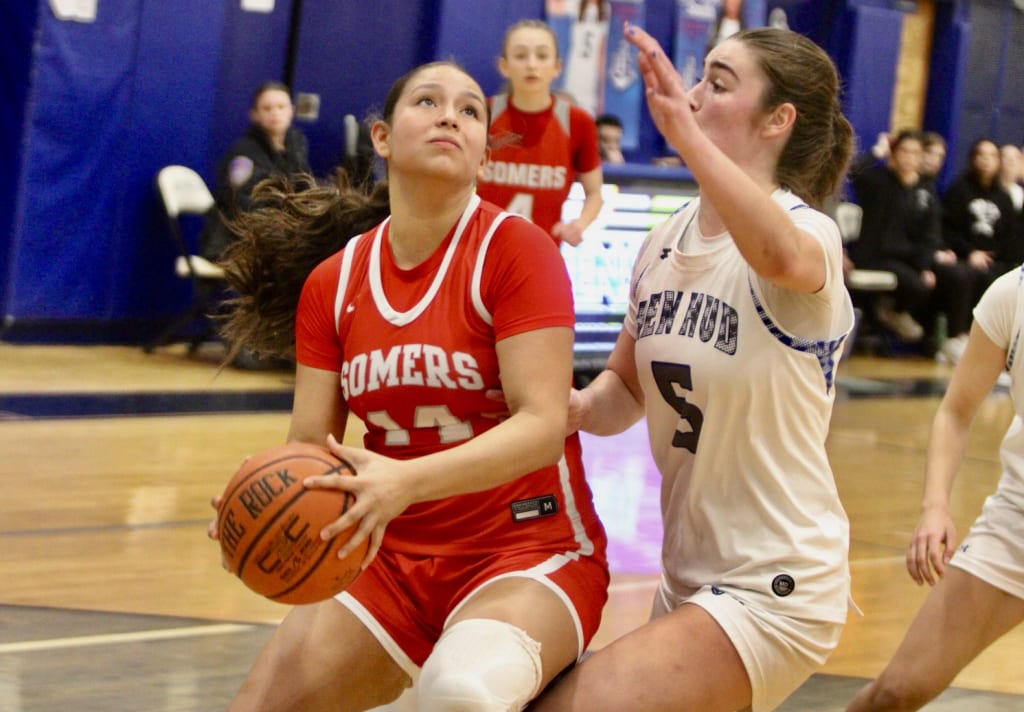 Nonetheless Hen Hud played big to keep Somers at a distance. Stratton sank one from the line after being fouled on a put back attempt and then the center blocked Contreras’ fast break run to the rim.