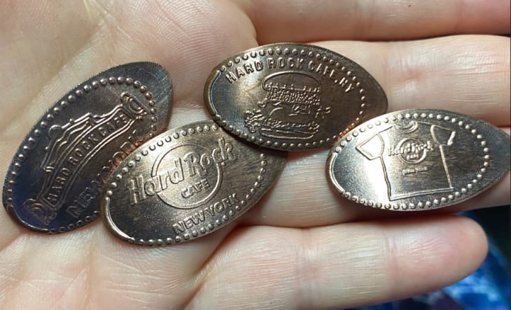 Squishies? Souvenir elongated coins, those shiny ovals of pure happiness that I crave. If I plot a trip, I will cross-reference my list and app (I’ve got both!) to ensure no new designs elude my grasping grasp. Why yes, I am obsessed, why do you ask? I have thousands. I need them all.