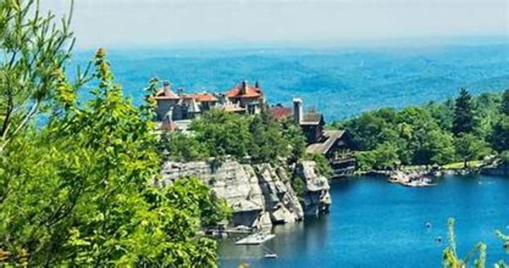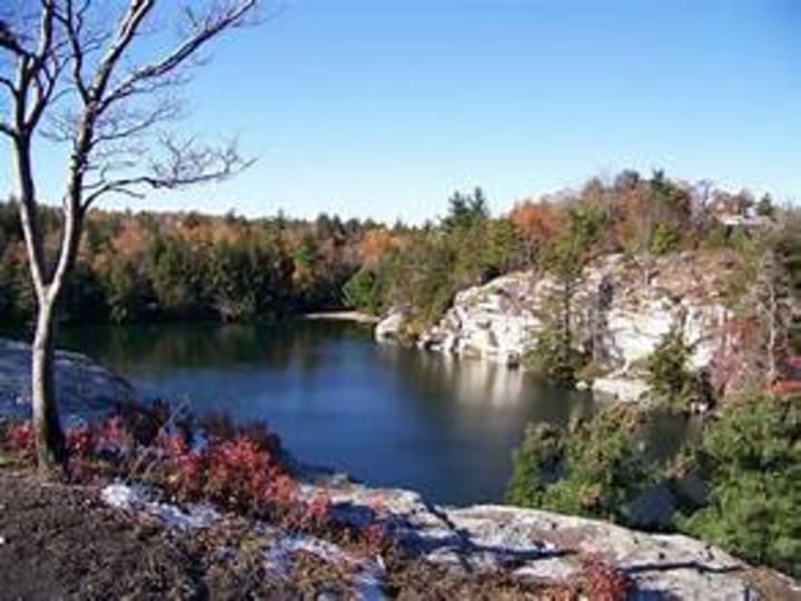 Enjoy Minnewaska State Park with white rock cliffs, forests, and mountain views.