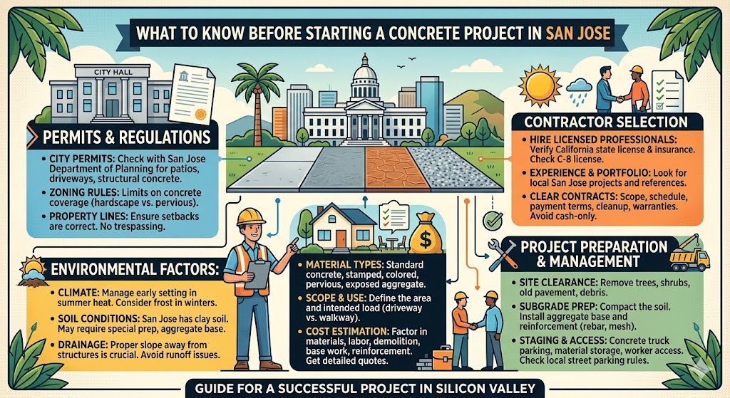Concrete is often seen as a simple building material — gray, strong, and permanent. But once you begin planning a driveway, patio, or foundation, you quickly realize that concrete work is far more technical than it appears. In a place like San Jose, where property values are high and curb appeal matters, making informed decisions about your concrete project can significantly impact both durability and long-term value.